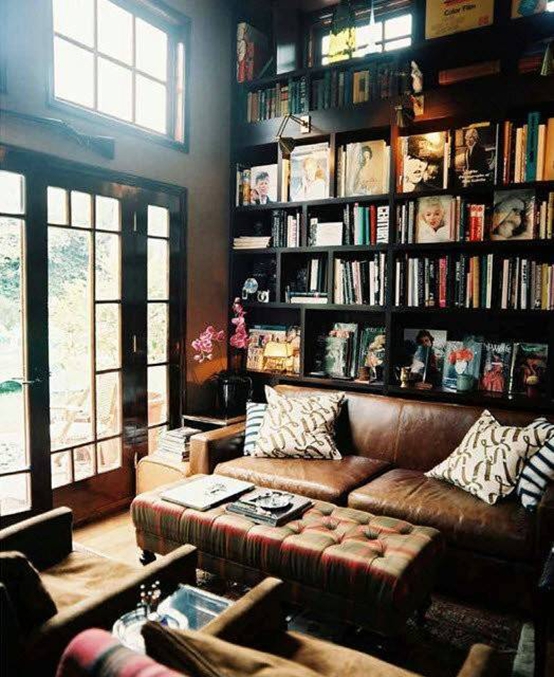 歐美風格裝修設計:大大的書架是整個房間最亮眼的作品,古典式的家具配上現代感超強的條紋,一點都不顯古板,反而透露著濃濃的書香味。
